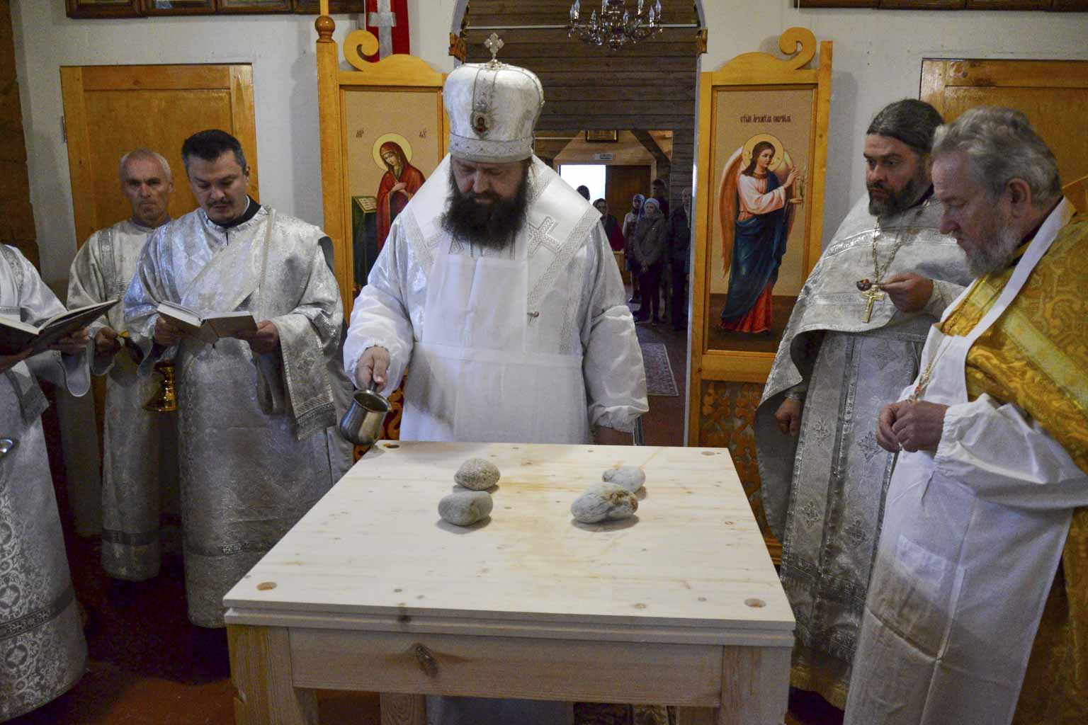Преосвященнейший Амвросий, епископ Светлогорский, викарий Гомельской епархии, совершил чин освящения храма свт.Василия Великого в д. Залесье и Божественную литурги.